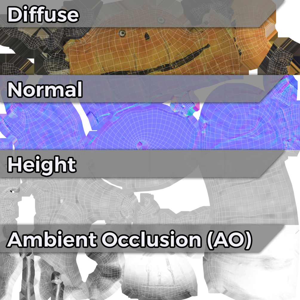 - 4k/2K/1K Ambient Occlusion texture for each level (respectively)