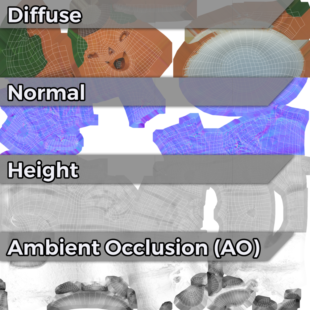 - -- Diffuse, Normal, Height, AO